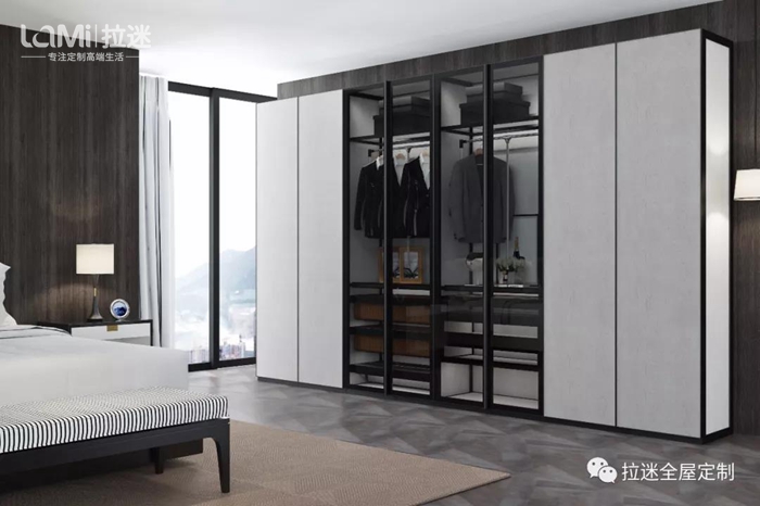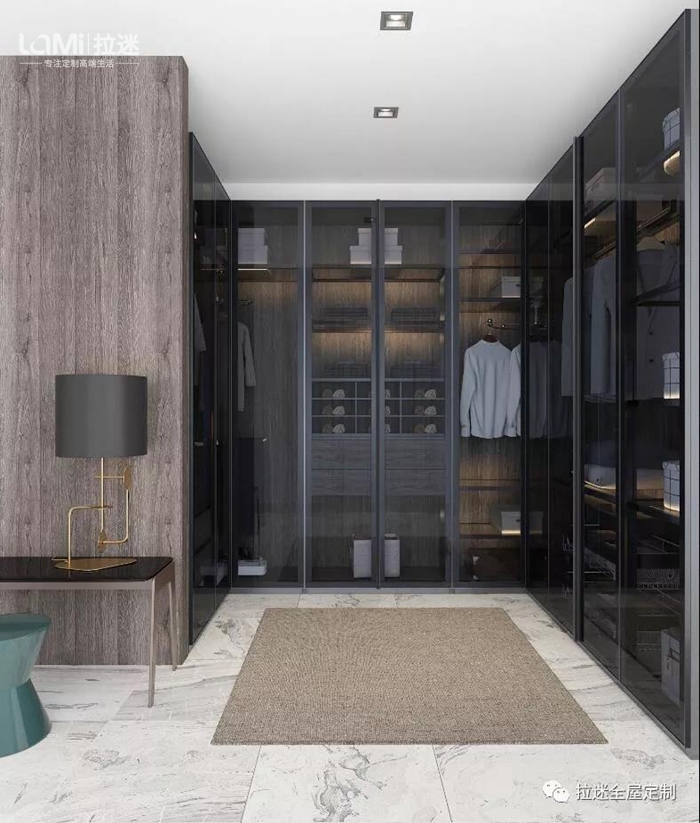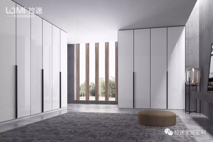 第二代“米蘭諾”與窄邊框小中空門進行了融合。衣帽間不用躲藏在角落中,而是成為家居中的一抹亮色。